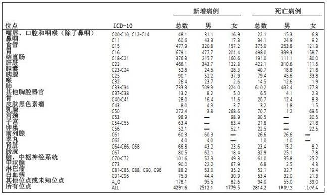 表 2 :2015 年中国不同性别新增癌症病例和死亡病例 预测