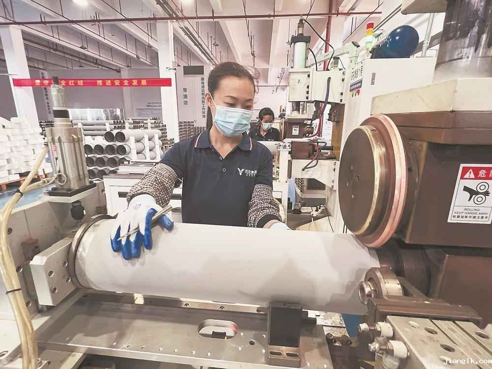 过滤实验台前的一幕令人惊叹:浑浊印染废水经一卷白色滤料加压过滤后瞬间澄澈,而市面上同类滤料过滤后的水样仍漂浮微细杂质。“传统的过滤技术要经历预处理、超滤、纳滤多道工序,我们将超滤、纳滤合二为一,实现多流程高效过滤。”蔡伟龙拧开阀门放出清水,“孔隙率比国外产品高,过滤精度更高,流程更短,节能降耗。”