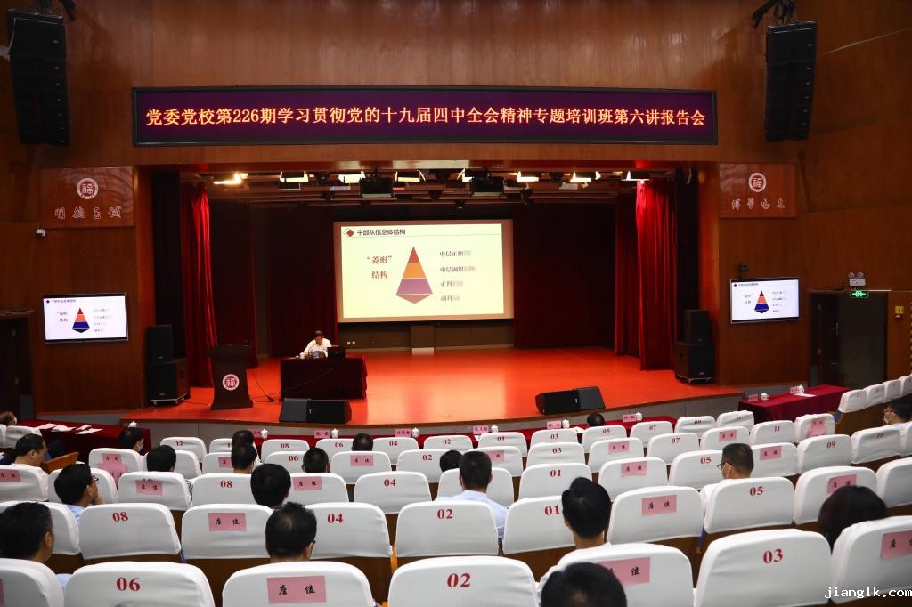 新闻中心讯/8月19日上午,华体汇app安卓版官网下载安装党委党校第226期学习贯彻党的十九届四中全会精神专题培训班第六讲报告会暨结业式在图书馆博学厅举办。相关校领导,全校处级、校聘干部等参加了报告会。